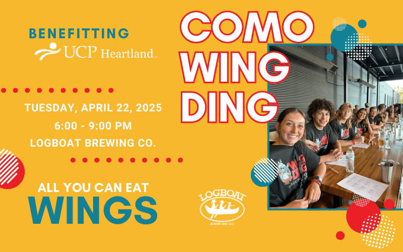 2025 CoMo Wing Ding, all-you-can-eat wing competition benefitting UCP Heartland Child Development Center in partnership with Logboat Brewing Company. Tonight 6-9PM