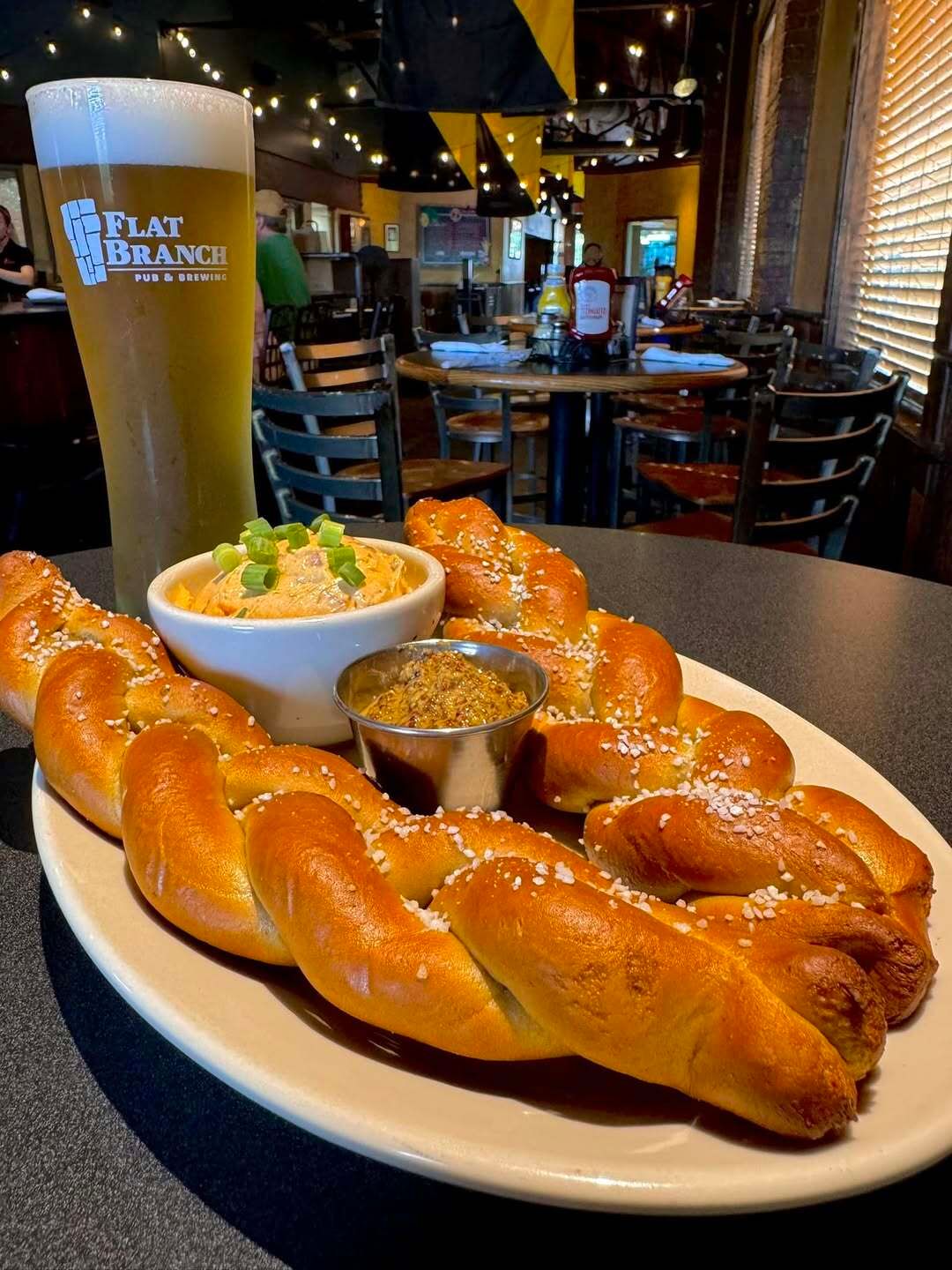 Featured Appetizer: Hot Soft Pretzel Twists w/ Spinach Cheese Dip @ Flat Branch Pub & Brewing